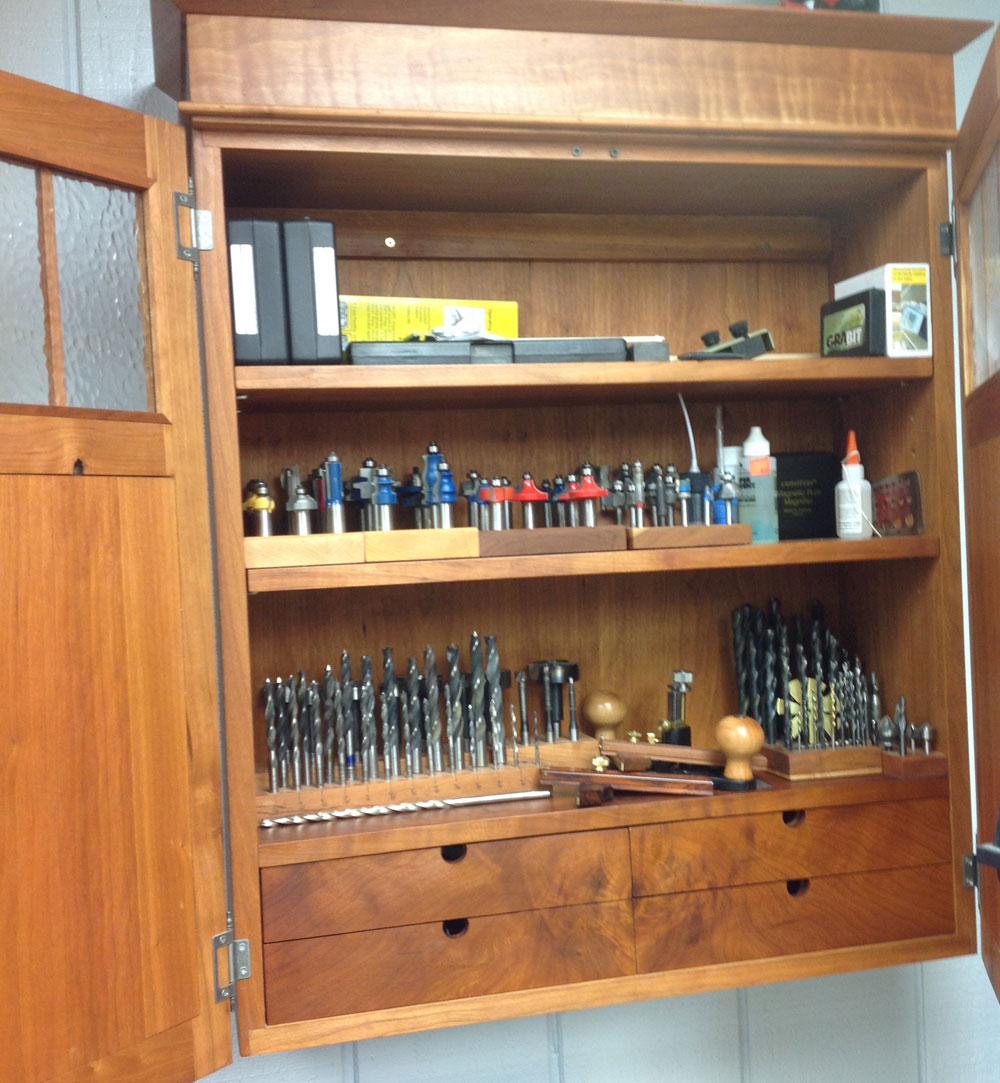 Below are some of my woodworking projects that I have built over the years. The tool cabinet is made of cherry with a little curly cherry across the top: