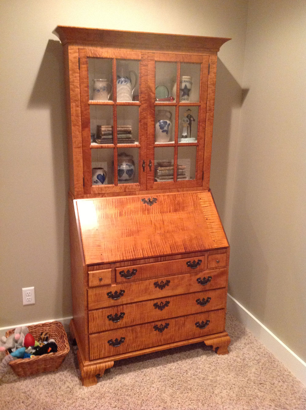 The slant top desk below is made of curly maple:
