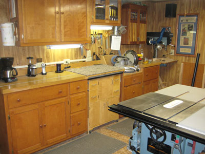 I built my shop 20 years ago. The barn is 14x20 with a 12x12 added on the back. I started with a Shopsmith and have progressed to this shop (I have been very fortunate). This was a great place for a dad with 3 daughters, now all grown up. It was a place to get away, and now they all need me to make them something.