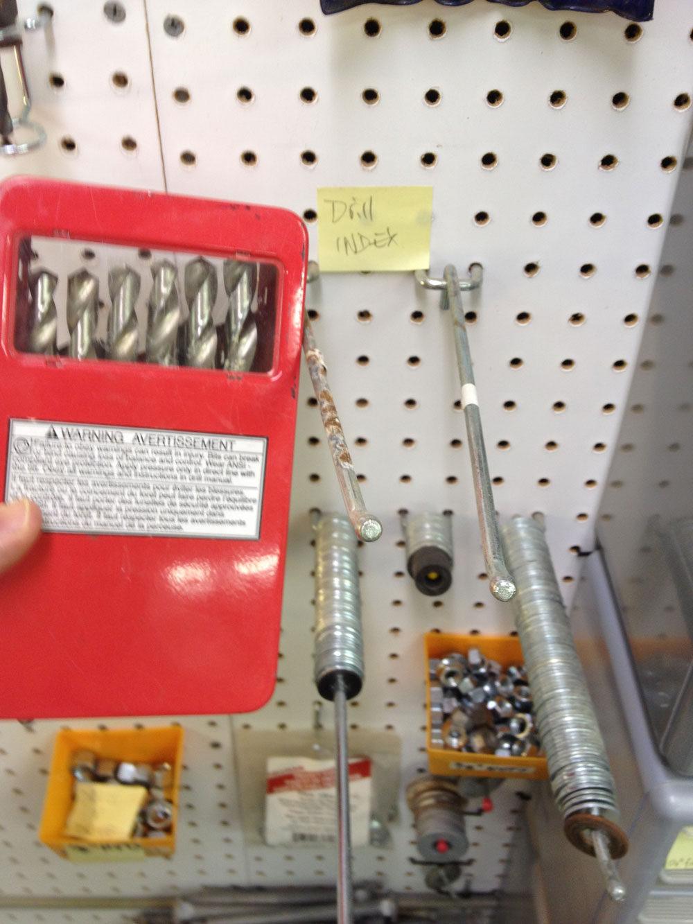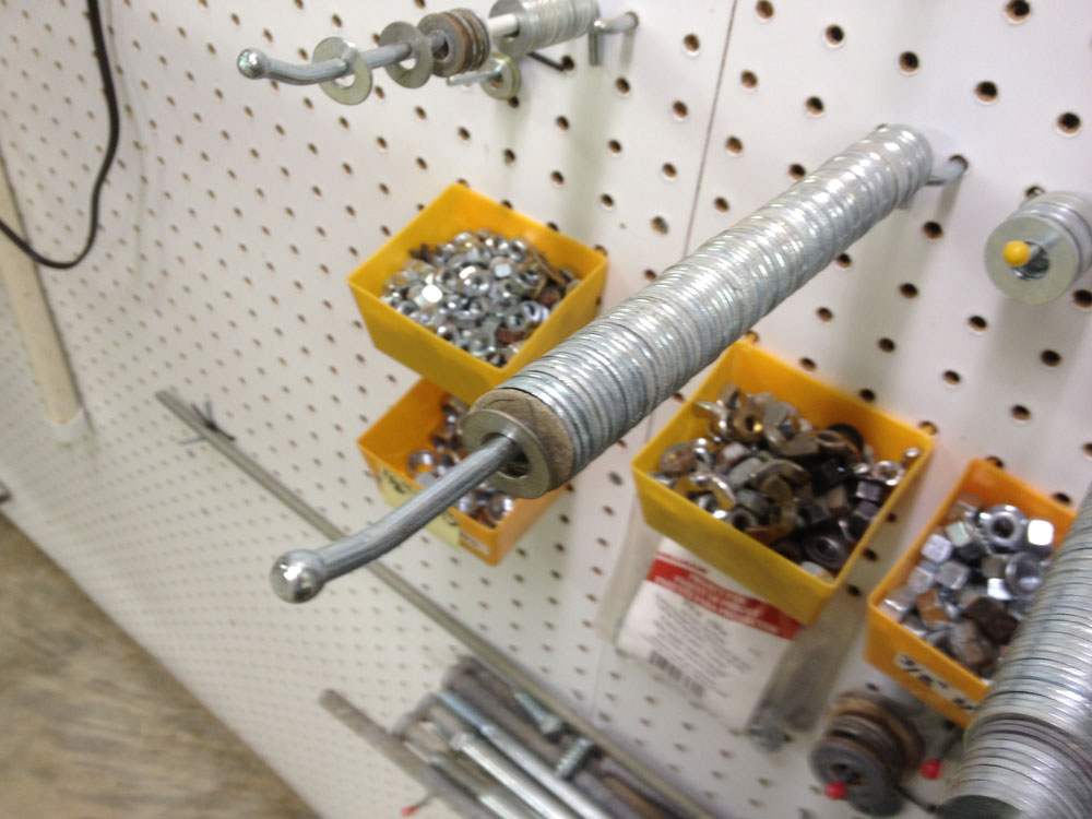 If you have a lot of washers all one size, use a long hook. If you have a few 1/4" washers that are a little rusty, but still usable, use a short pegboard hook. Or, send them to me.