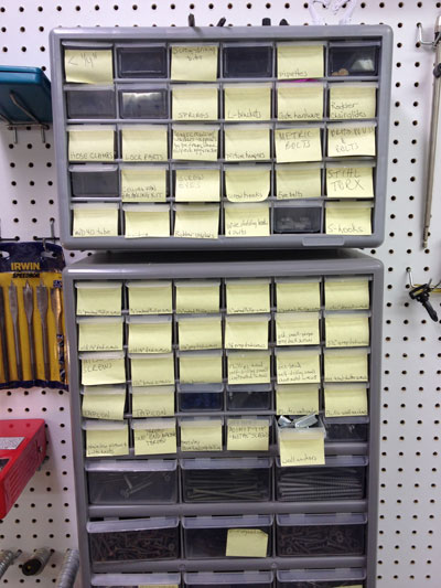I keep forgetting to go and look that up! While there are plenty of ways to store things, don't let yourself get stuck in "one-size-fits-none." For example, you could stack a whole bunch of washers in a drawer and they would fit very efficiently if you took your time to stack them neatly. Of course, close the drawer once and they are topsy-turvy again. (Ever wonder where the term "topsy-turvy" came from?