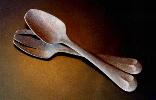 I've carved many cooking spoons and salad server sets. This set below is in mahogany: