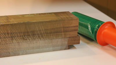 Store "project-ready" parts even more carefully. When the tenons are cut, the dovetails are done, or the miters are perfected, but you are not quite ready to glue up the whole project, it may be helpful to stack the parts and wrap them together tightly with so-called "plastic twine." Essentially just narrow rolls of shrink-wrap, this stuff is great for tightly binding parts together. Wrapping the parts will minimize movement, protect the parts, and keep everything together until you are ready for your next "shop day."