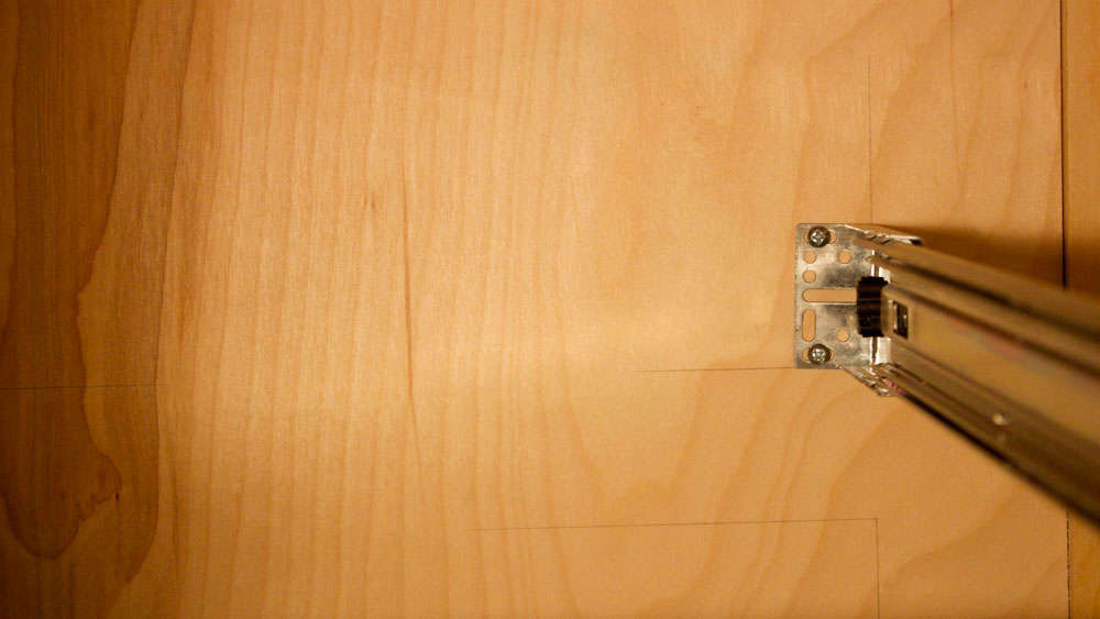 , there was a pretty good tip about how to align the rear of the drawer slide mounting brackets, but there just wasn't time. In the video clips from the cutting room floor, a segment shows how I stacked the face frame on top of the solid rear panel before assembling the base cabinet and used a pencil to trace the inside lines of the face frame onto the panel. When it came time to mount the rear brackets for the drawer slides, there were already handy location marks on the panel.