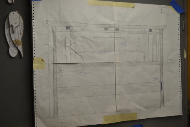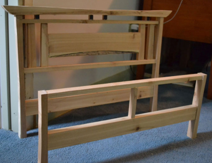 Since we moved into our house in 2007, my wife and I have been sleeping on a mattress on the floor. Yes, she is a very patient woman. In 2009, I began noodling some sketches of an Arts and Crafts style bed but nothing was catching my fancy. I then came across an article that discussed how the Arts and Crafts designers were inspired by Japanese and Chinese furniture. This led me to Google image searching Japanese architecture and I came across images of the Torii gates with their gently sweeping curved tops. That design element was quickly integrated into my sketches but I was uncertain of the mid portion of the headboard design. During a plane trip, I used onion skin paper to play with various panels inspired by shoji designs.