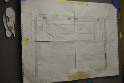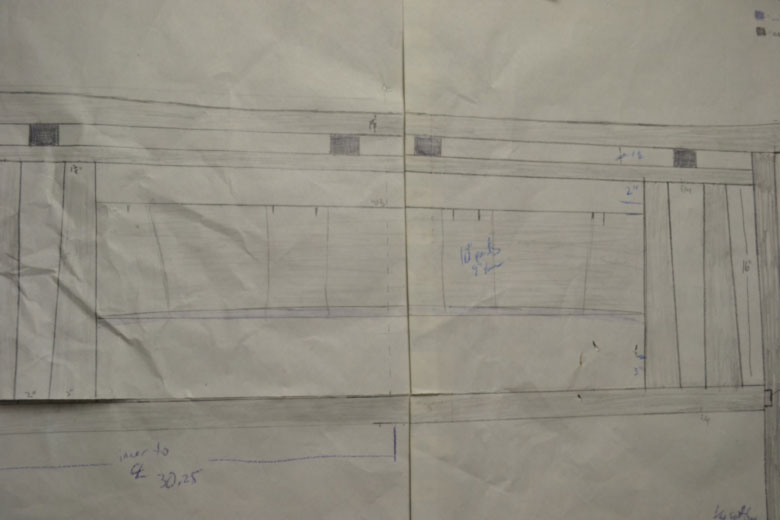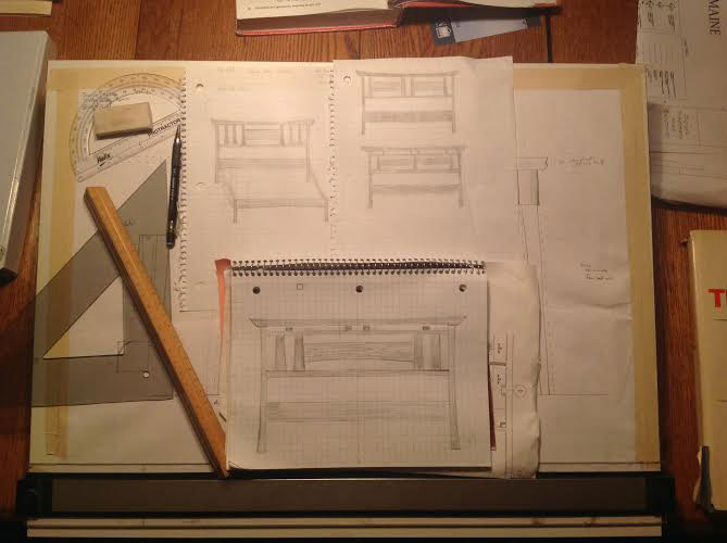In 2010, I finalized a scaled drawing that I was pretty pleased with. The central panel would have a straight top and a concave bottom edge with a contrasting wood edging to highlight the curvature and draw the eye to the detail. This design seemed to work and it would allow me to play around with different wood thicknesses as a design element, as well as giving me ample opportunity to improve my re-sawing skills at the bandsaw.