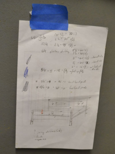 However, this model was the closest we would get to a bed for quite a while. I began a Master's degree program and my woodworking gave way to studying, reading journal articles, writing papers and developing my research project. I didn't begin the construction phase until after completing my degree. So, the Fall of 2013 finds me in New Hampshire, buying quartersawn and flatsawn white oak. With my daughter in college and my son rapidly approaching post-secondary education, I invest a lot of time picking the correct boards and making sure I have enough wood as is sufficient but as little as is necessary to get the job done.