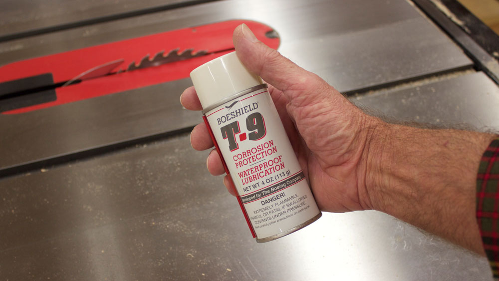 on my jointer will keep rust spots at bay, but tiny spots will start to show on the SawStop within days. Based on a recent positive review in another publication I gave the CRC 3-36 product a try, but it did not perform any better than T9 and the stuff really stinks. I mean CRC 3-36 really smells bad… like raw sewage… no, like fermenting raw sewage… no, no, fermenting raw sewage inside a vinegar plant… downwind from a nuclear meltdown… there we go, that's about right. You might like it. I started buying T9 in larger cans and putting it on heavier.