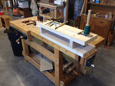 Carving on your bench with the work low is killer on your back. A while back (no pun intended), I built a simple bench top carving bench out of 8/4 maple to raise the work to a more comfortable level. I tried to build this small bench with some basic bench-building principles in mind. With all the pounding it was going to endure, building it heavy and stout were at the top of the list. I also wanted it to be easy to move and store when not in use.