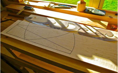 I make my initial layout lines using a ruler and French curves. This is the only time I use layout tools during the carving process. This gives me the basic, overall pattern that I'm trying to achieve. As for the placement of the lines, I don't make it complicated. I just place lines where I think they are visually appealing. Once the initial layout is achieved, I move onto the carving.