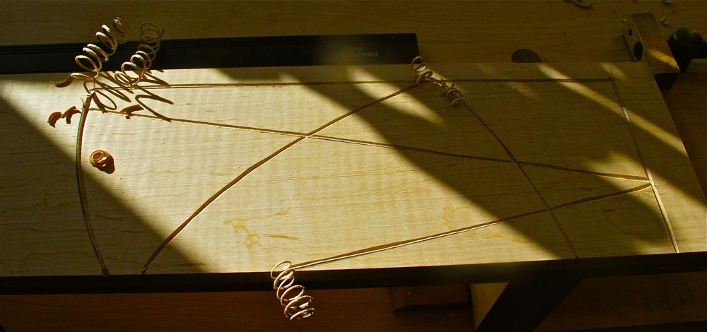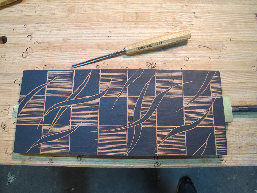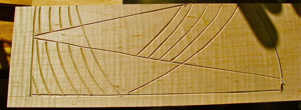 Carving progression. After the initial layout lines are carved.