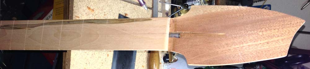 carefully, following my layout until the two cuts met near the headstock. It is good to remember that
