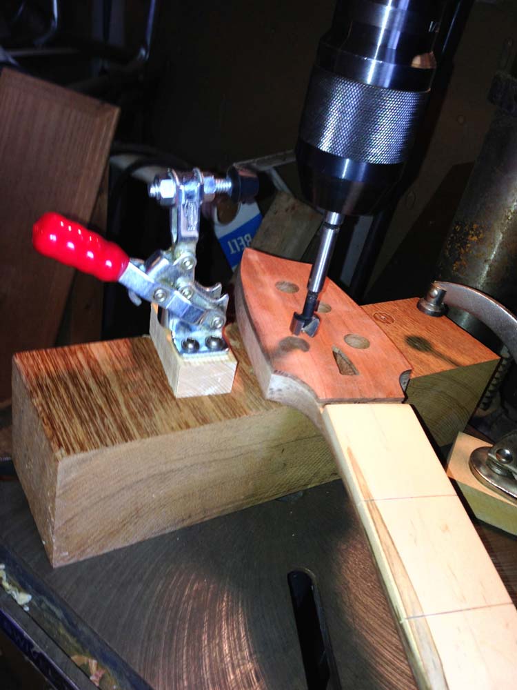 I built the jig to help hold the headstock securely while I drilled the holes with my drill