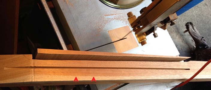 slot, and transferred that depth to both outside edges of the neck at three locations running along