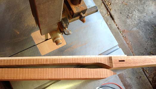 After removing the nut and lifting the fretboard from the neck, I was off to the band saw. I