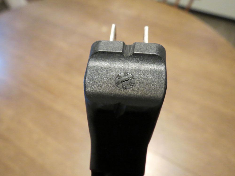 . Eugene Turgeon writes, and includes a photo: “An alternate solution to the plug problem. It takes about 10 seconds with a pocket knife. It also works in the dark, in case you are trying to plug in a lamp in to look for your bifocals. Just put your thumb on the notch and plug in (if it isn't too dark to see the outlet).”