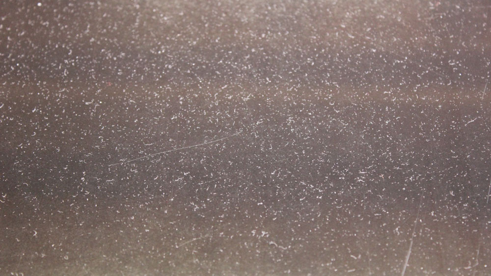 In the accompanying three photographs above you will see first a clean baseline photo of the top of my SawStop extension table. It was cleaned and dusted with a microfiber cloth. I then checked the amount of lint produced by each type of paper towel. I developed a repeatable system for "agitating" the towels precisely the same and then photographed the resulting lint released. The white paper towel produced a veritable "ton" of lint, as expected, but I was surprised how much was produced by the blue paper towel. Less, to be sure, but still quite a bit.