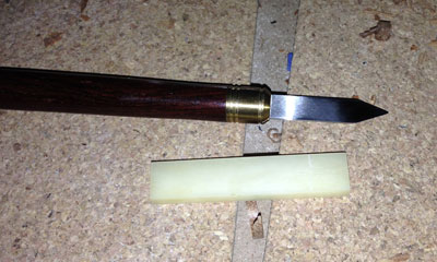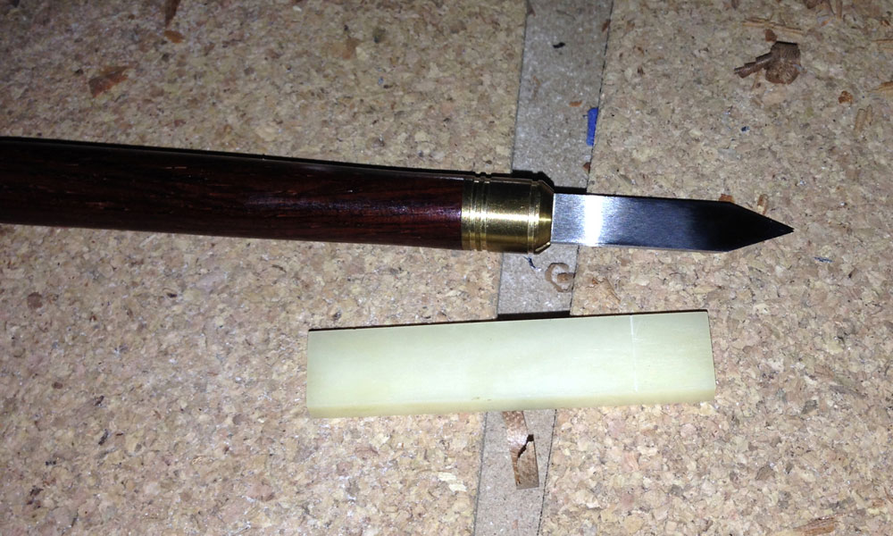 Marking knife used to scribe length of the nut