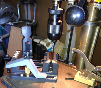 Vise used on drill press to hold each saddle during drilling