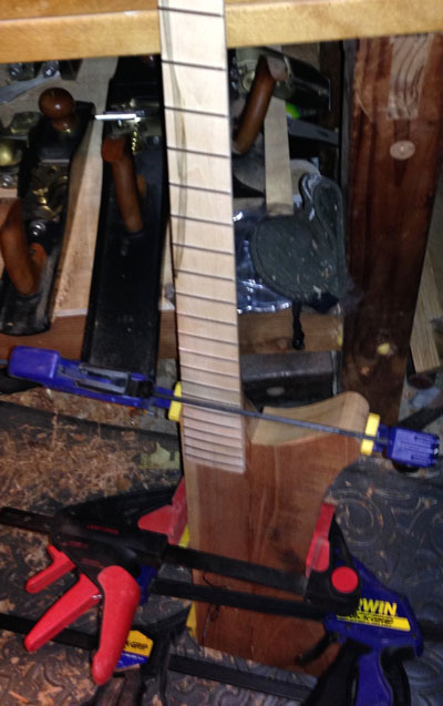 to read Part 4 of the Electric Bass Guitar Build - Gluing the Fretboard, Cutting the Headstock and Installing the Tuners