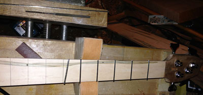 It is time to install the frets into the slots I cut into the fretboard back in