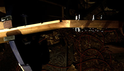 I clamped them together for about an hour and then repeated the gluing process on the other side wing. This time the clamps went fully across the bass's body. I left the clamps on for almost a full 24 hours, letting the glue do its thing.