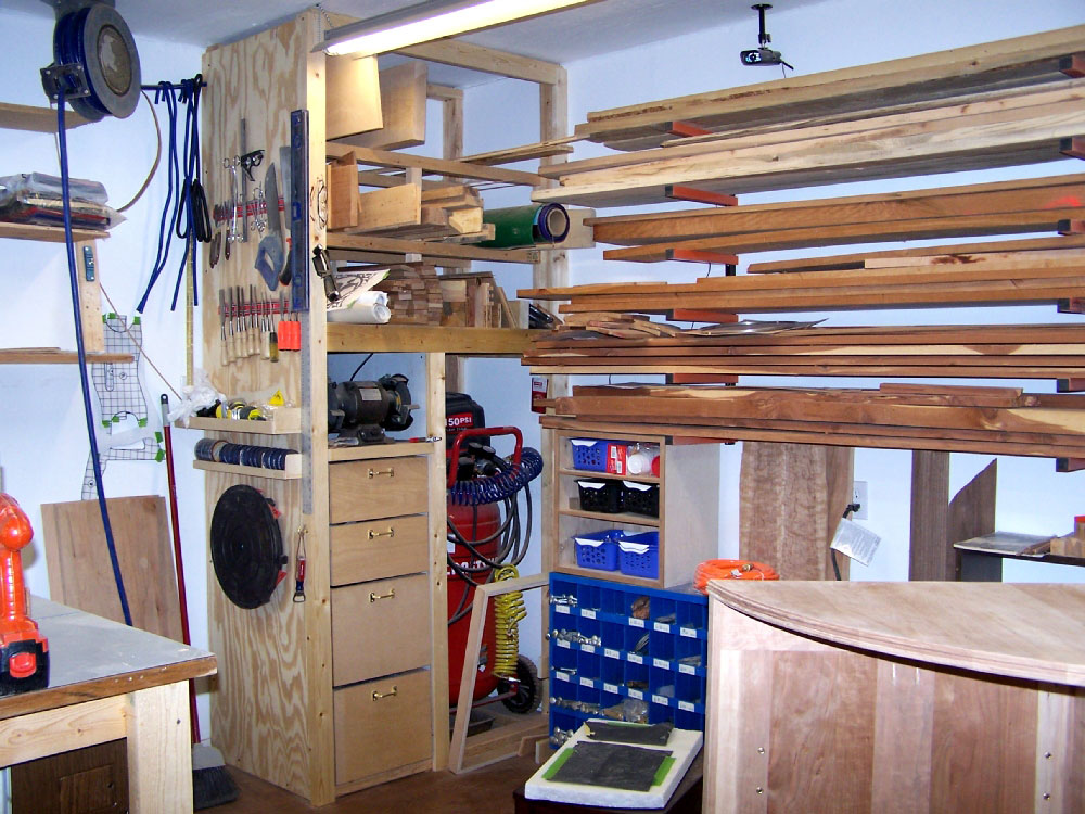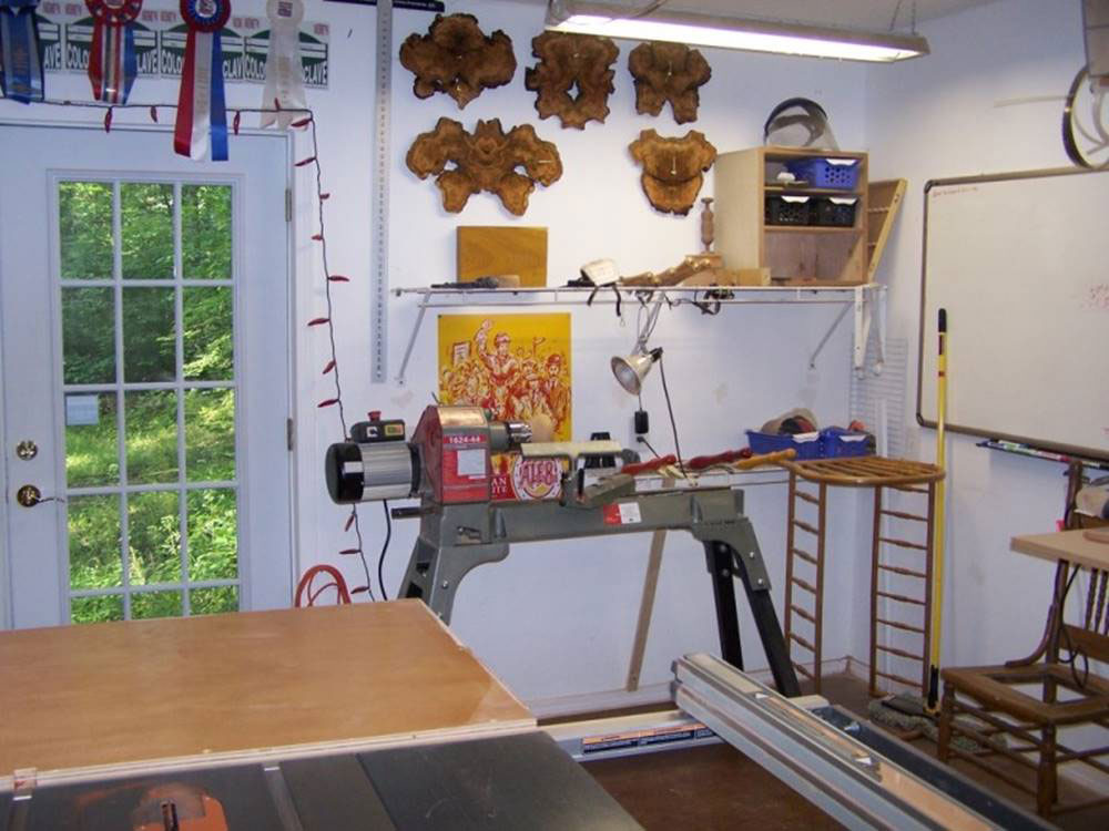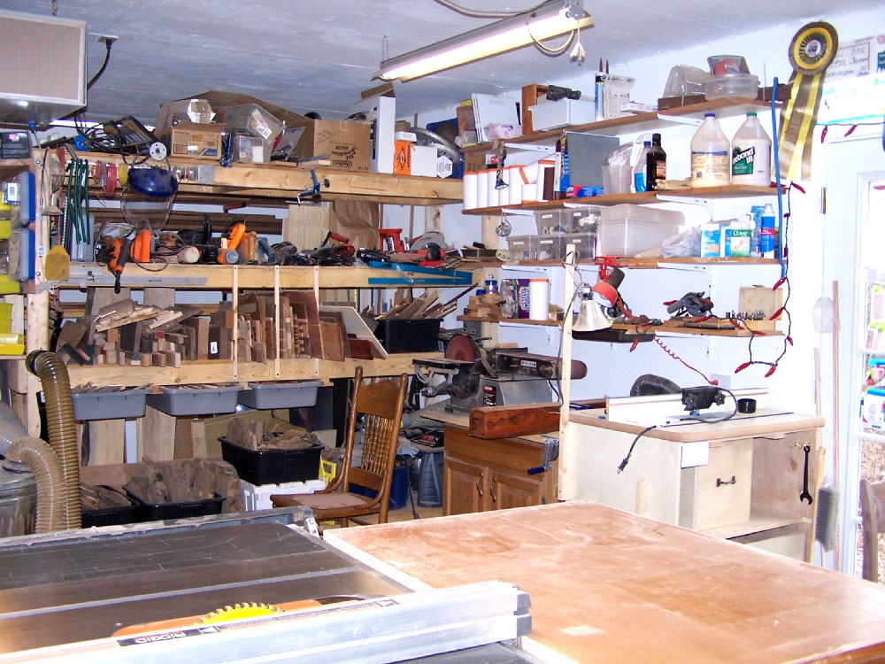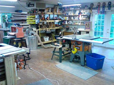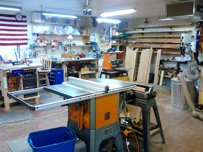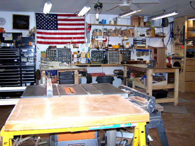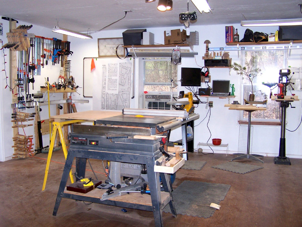 So far I've managed to collect a table saw, 6" jointer, 14" band saw, 13"planer, floor drill press, scroll saw, shop built router table, combo disc/belt sander, not quite enough clamps, and assorted smaller power and hand tools. Two 3' x 6' work benches come in very handy when shifting between projects.