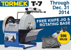 Now through Dec. 31, 2014, we're including FOR FREE a handy rotating base worth $55, as well as the SVM-45 Knife Jig worth $39. If you've been wanting a Tormek T-7 to streamline sharpening in your shop, now is the time to buy! CLICK HERE for more info: