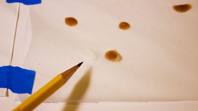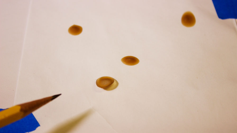 I did several tests to address common woodworking shop uses. First, I dribbled a few spots of