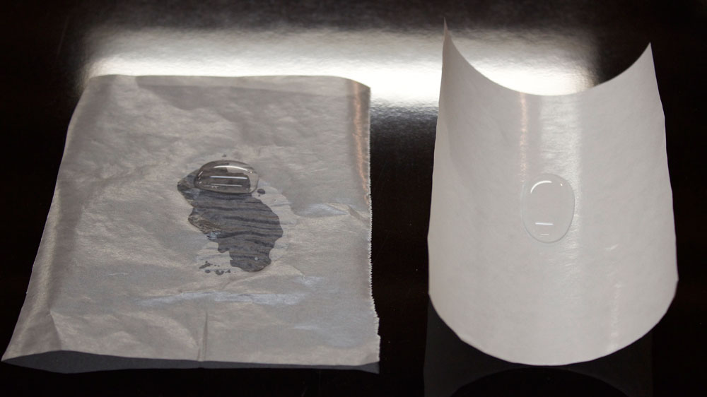 With mineral spirits, the waxed paper leaked though within three seconds. There was no