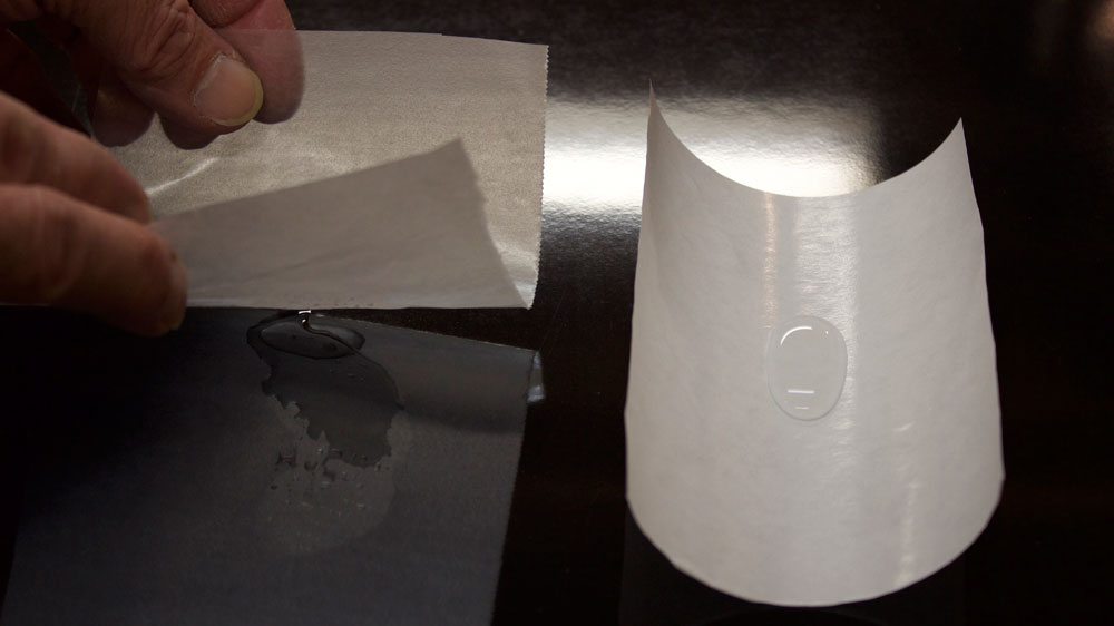 paper. With the freezer paper, there is not even a mark indicating where the glue was attached. In