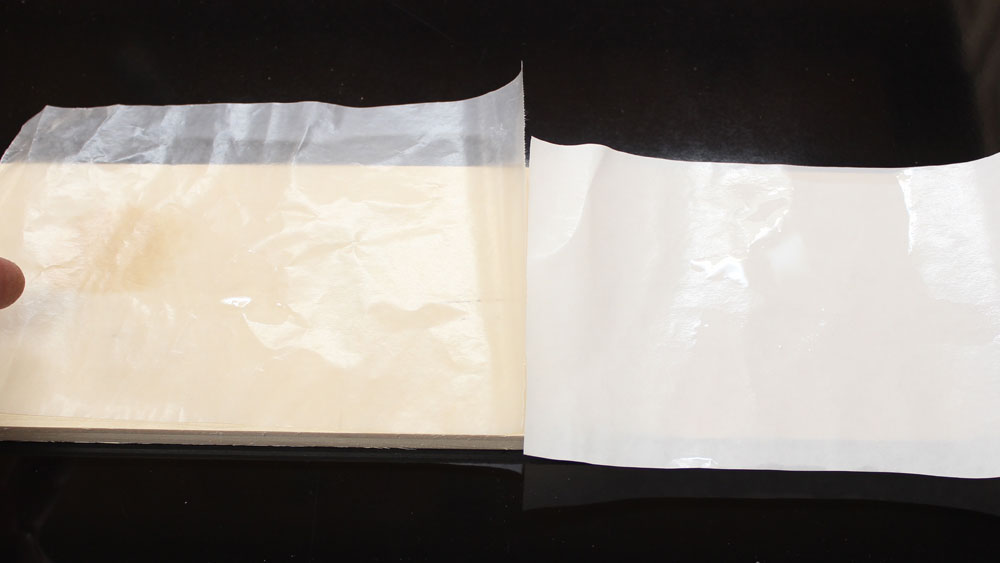 So, for the workshop, which is best? At $0.04 per square foot, freezer paper is twice as expensive as waxed paper at $0.02. Freezer paper is over three times as thick at 0.07mm versus 0.02mm. In practical use, a roll of common store-bought freezer paper is a smidge under 18 inches wide and waxed paper is a tad under 12 inches, so covering a bench or work surface with freezer paper takes less strips. But freezer paper retains its curl (likely due to its thickness) more than waxed paper, so the edges need to be taped down so it lies flat.