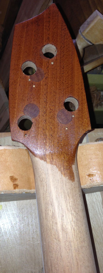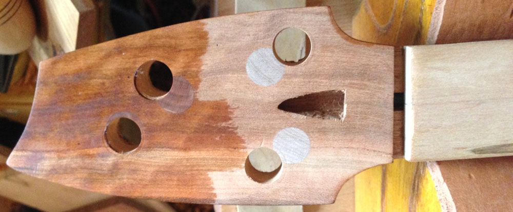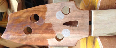 of some cherry scrap I had on hand to fill the tuner holes. This allowed me to quickly