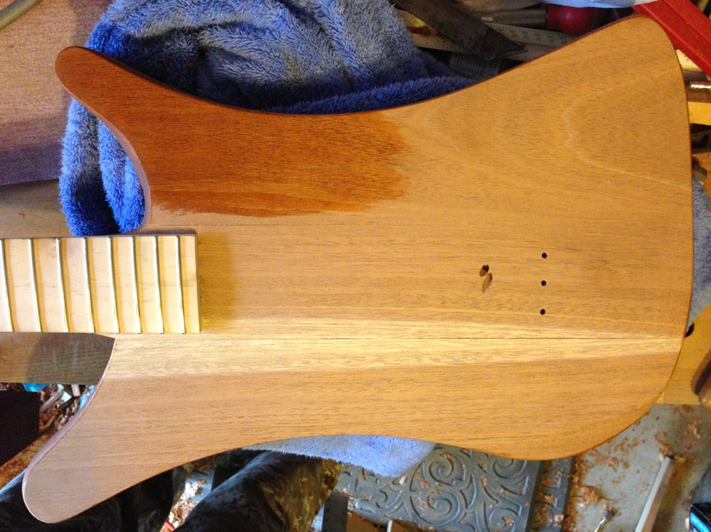 The finish on the bass is taking a little longer to dry than planned, as we have higher humidity
