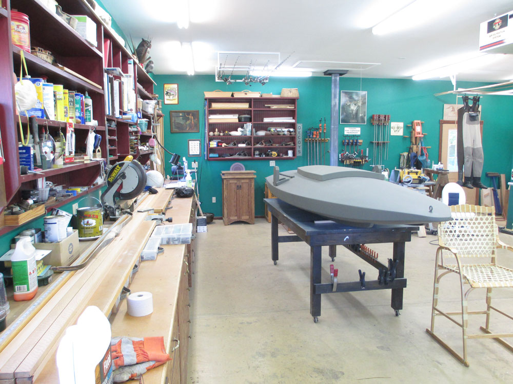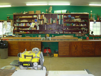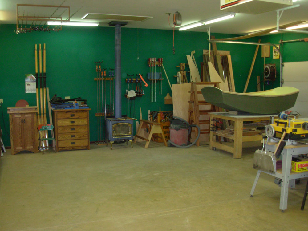Below is a photo of my shop in action. I just finished building a Barnegat Bay Sneakbox out of Red Cedar strips over laminated Ash ribs. The above-average amount of dust in the shop was caused by hours of sanding the epoxy covered fiberglass on the boats' hull.