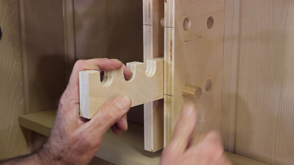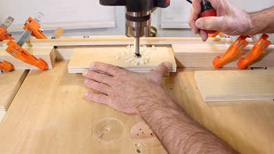 The last step is to cut dowels to slip into the front-side holes. Make these longer so you can grab them to pull them out when you want to reposition the clamp brackets. I made mine 3-1/2" long.