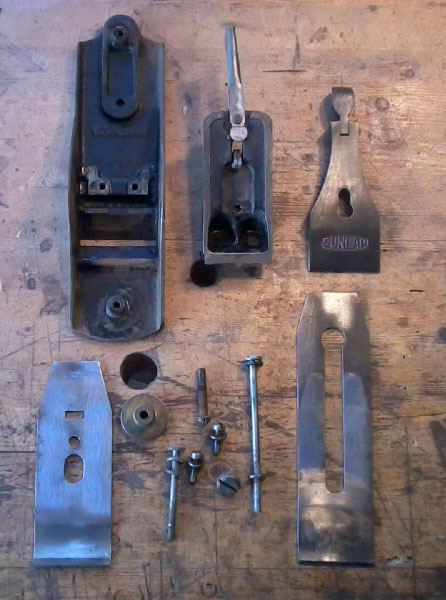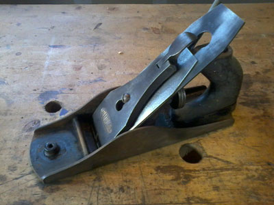 Now several manufacturers still make scrub planes; the Lie-Nielsen iron body #40 and the ECE wooden version come to mind. But with some sweat equity and a flea market smoothing plane, you can create a very inexpensive scrub plane and enjoy a rewarding project. The good news about choosing a smoothing plane for your scrub plane conversion is that you don't have to buy the best model out there. You may even have an old beater in your shop collecting dust on a shelf somewhere. I found this old Dunlap with a missing knob and broken tote for my scrub plane. Dunlap was Sears 2nd tier tool line back in the day but was perfect for this project.