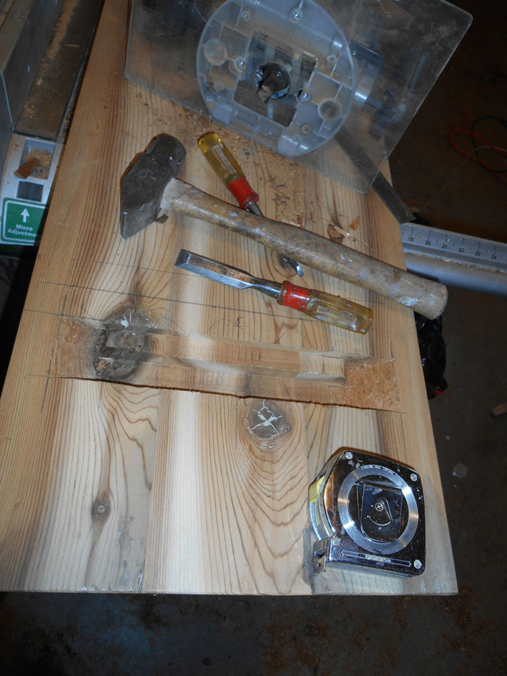 Because my jointer could not handle 12 inch planks, my first milling process was to rip the planks into 6 inch widths. During this process I discovered the wood was actually Western cedar. The plank had survived approximately 100 years since being milled and we estimated the tree it came from was at least 100 years old when it was felled.