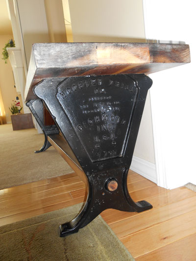 Last year one of my nephews purchased a rural property in Northern Idaho and built a home for his family. The property had been a homestead dating back to the early 20th century. Among other things, it contained an old barn and several antique pieces of farm machinery. One of these pieces was a seed drill made mostly of wood, but which contained two cast iron end pieces. Ironically, the drill had been manufactured in Richmond, Indiana, near where his wife grew up. He asked me, as a surprise for her, to make a bench using these castings as legs.