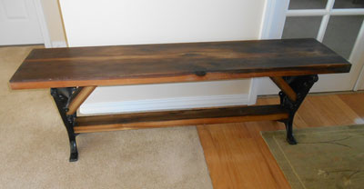 The finished bench will provide a statement piece for the new house and become a conversation item for future years. Not many homes have a piece of furniture made from a 100 year old antique cast iron casting and a 100+ year old wood plank salvaged from the home site. Welcome home!