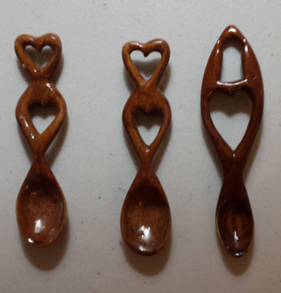The more I carved the Love Spoons, the more I became interested in their history. So I actually purchased several books on the subject and researched the subject as much as possible. Eventually, I decided to purchase an actual carving knife and I carving chisel to make carving the spoons easier and less frustrating. I also began purchasing several different types of exotic woods from my local woodworking supply store. In doing so, I found which woods were easier to carve and which woods to stay away from because of their hardness. Some woods were so difficult to carve I would actually spend up to a full week carving one spoon. The wood was so difficult to carve I could only carve for an hour or so before my hands would start hurting so bad I had to quit for the day. Since I have Fibromyalgia, I often find it difficult to carve.