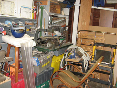 My photos might lead the viewer to think "hoarder" but I do prune a couple of times a year. My biggest faults are the bad habit of letting things lay where I put them down and holding on to little bits and pieces for a couple of years to see if I'll ever need them. All those parts bins are full of not only nuts and bolts but vintage fittings and odd ball whats-its. No empty horizontal space in my shop. I wanted to share the theme of my anti-shop after seeing numerous featured shops, grand in size, well organized, and often quite tidy; the antithesis of my shop.