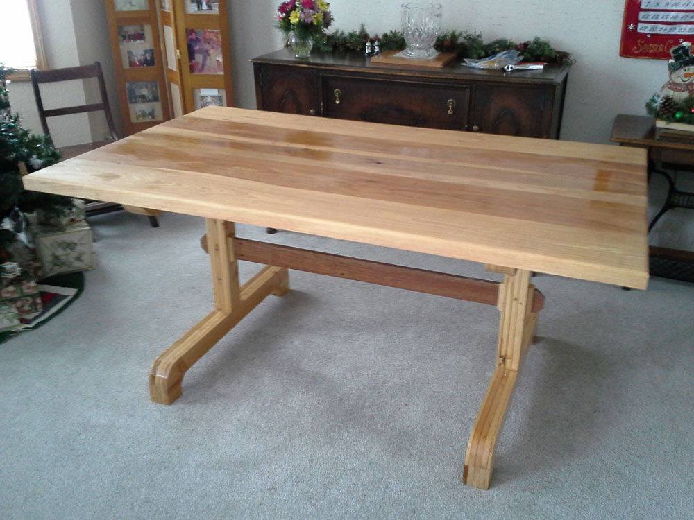 mahogany cross brace and the top is 8/4 hickory