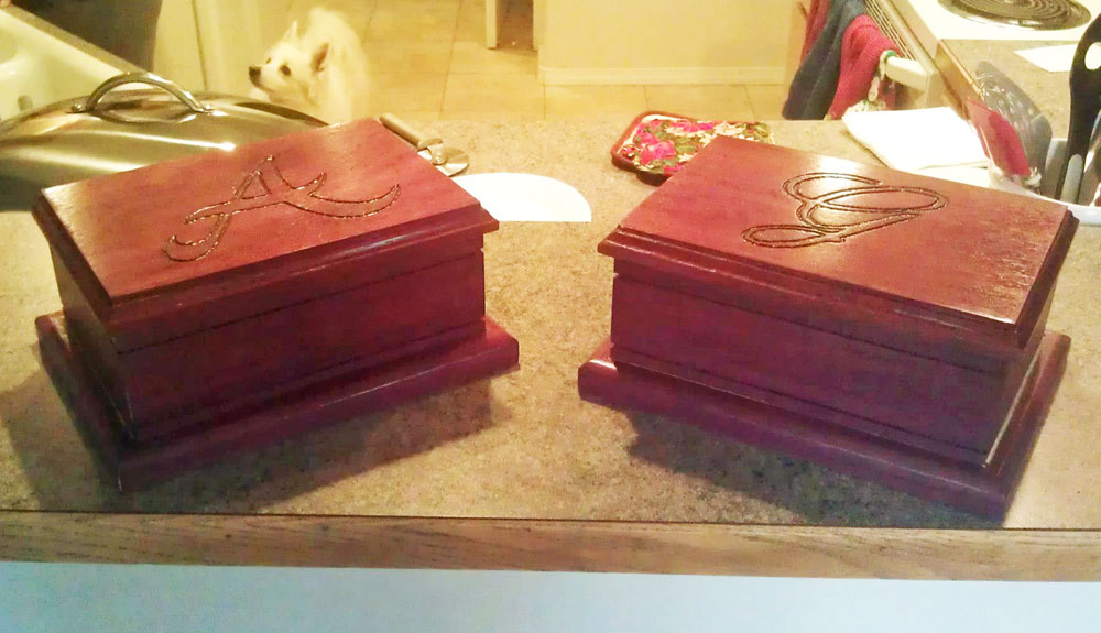 Jewelry Boxes - Made from Purple Heart.