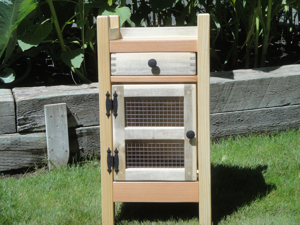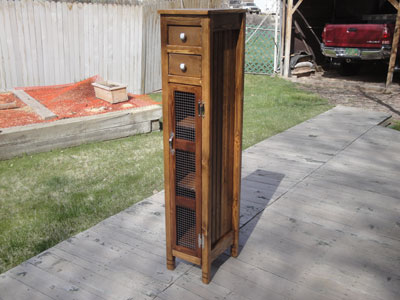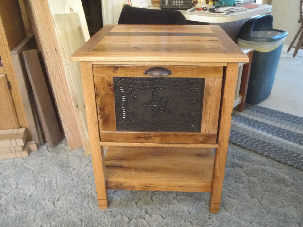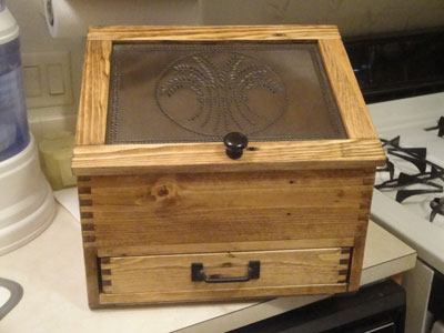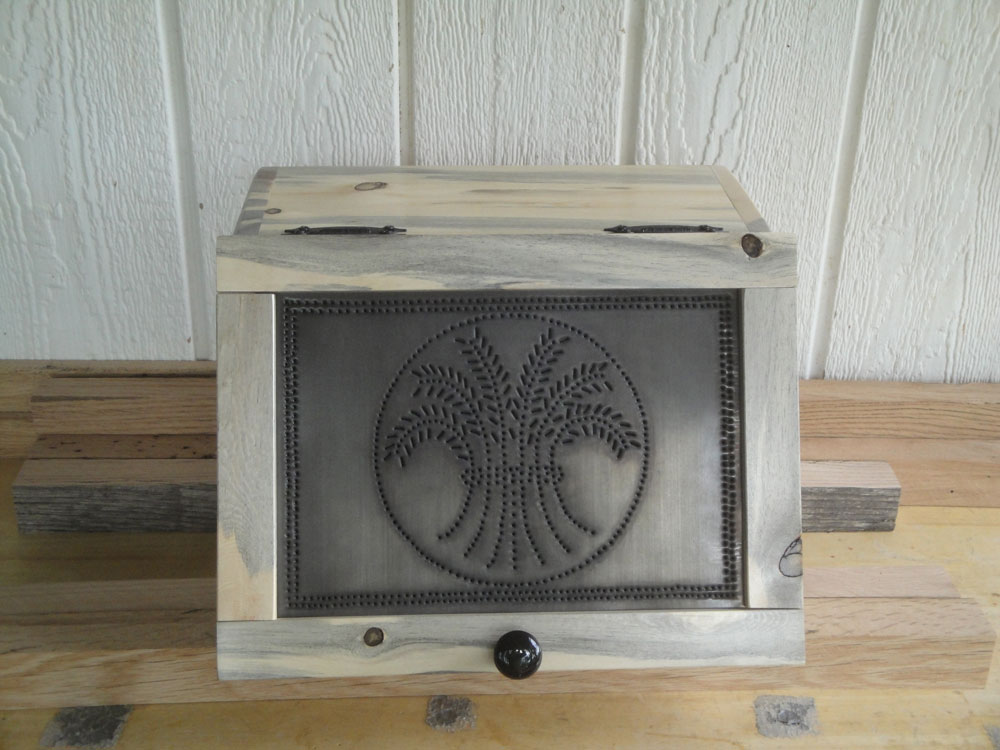 Breadbox made from an old pallet with punched tin door