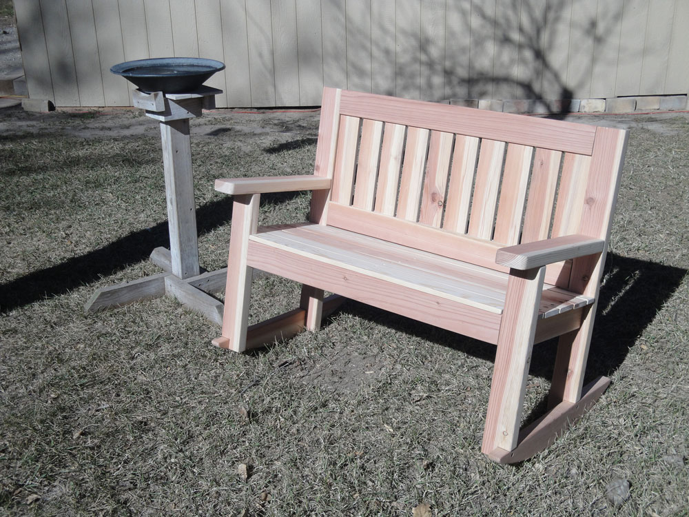rocking Redwood Bench to surprise her husband for their