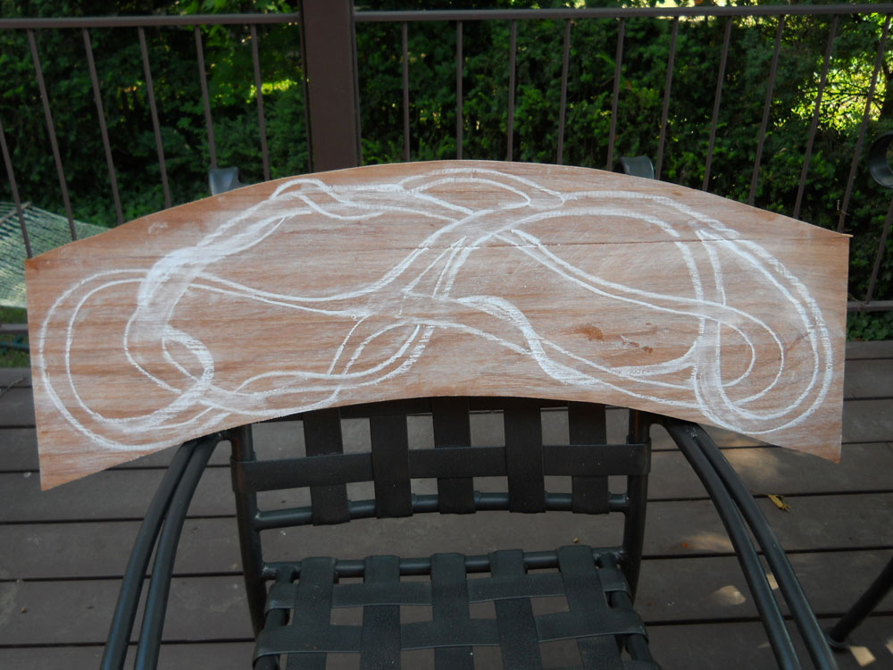 Below you can see the stages of one of my carved wooden sculptures. I start with 1" thick mahogany. I use chalk to sketch a design and usually make