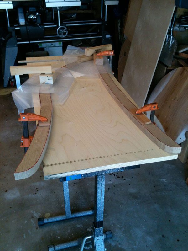 To assure that the joints on a curve would line up in final size, each joint was fashioned by cutting both pieces at the same time. I felt that gave me the greatest chance to have invisible joint lines.