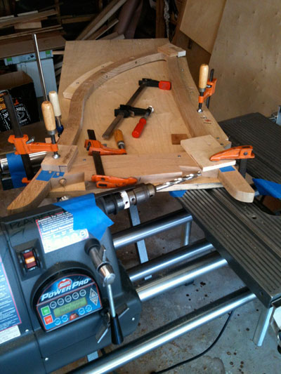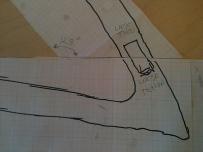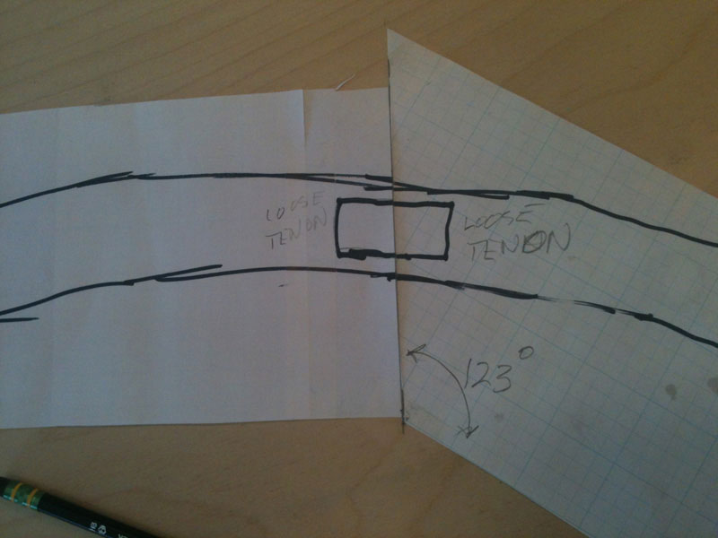 Since my jointer was only capable of pieces 4 inches or less, the unfortunate truth hit me. I had to make 2 joints on the curved legs one of which is shown hand-drawn on the full size drawing.