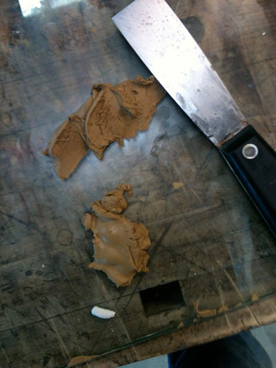 The legs were dyed with the same batch of Lockwood water-based solution as the long dowels and finished with four coats of spray polyurethane. Since there were some minor 'imperfections' in the Rack that needed to be filled, I used a tip from Brian Miller on using painter's putty and dyes to match the finish: